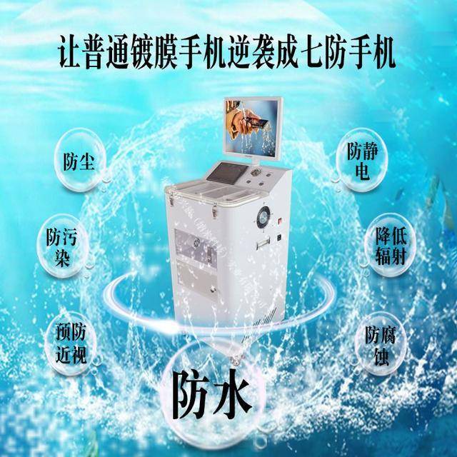 手机防水镀膜的工作原理:先通过真空高压雾化机将手机内部空气抽出,在通过雾化机将纳米防水绝缘液雾化后,在根据不同型号的手机调整好的相应的压强大小,雾化用量,还有时间的设定,然后开始喷涂,最后进入烤箱烘烤固化,完成镀膜!但是它有个缺点就是手机型号大小不同,它的液体喷涂量也不一样,所以说控制不好量就达不到使用要求,如果喷液少达不到目的,喷涂不到位起不到作用。多了又会影响手机元件原有的空间设计。